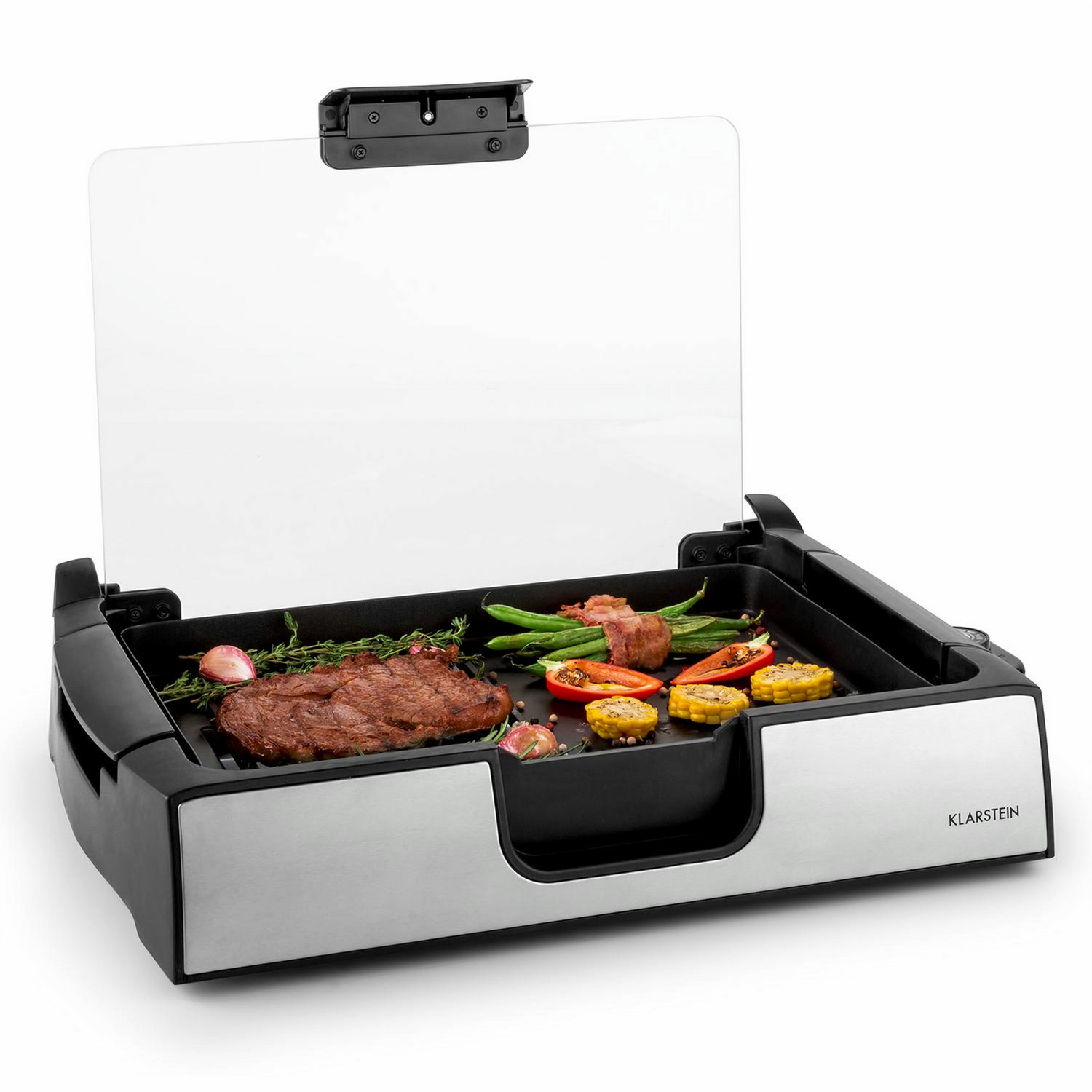 Der Showmaster von Klarstein ist ein hocheffektiver Tischgrill, um den sich die hungrige Familie zusammenfindet um gemeinsam ein leckeres Barbecue zu erleben. Mit seinen starken 1500W und der Glasabdeckung entwickelt er Temperaturen von bis zu 250°C und bietet damit beste Vorraussetzungen für die Zubereitung saftiger Steaks, mediterraner Meeresfrüchte, und knackigem Grillgemüse.