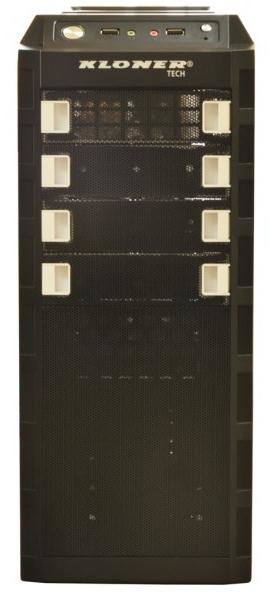 Kloner T-Figther. Formfaktor: Midi-Tower, Typ: PC, Material: Stahl. Energielieferung Platzierung: Boden. Unterstützte Lüfter Durchmesser vorne: 120 mm, Unterstützte Lüfter Durchmesser seitlich: 120 mm, Unterstützer Durchmesser der Lüfter hinten: 120 mm. Unterstützte Hard-Disk Drive Größen: 3.5 Zoll. Breite: 190 mm, Tiefe: 445 mm, Höhe: 420 mm