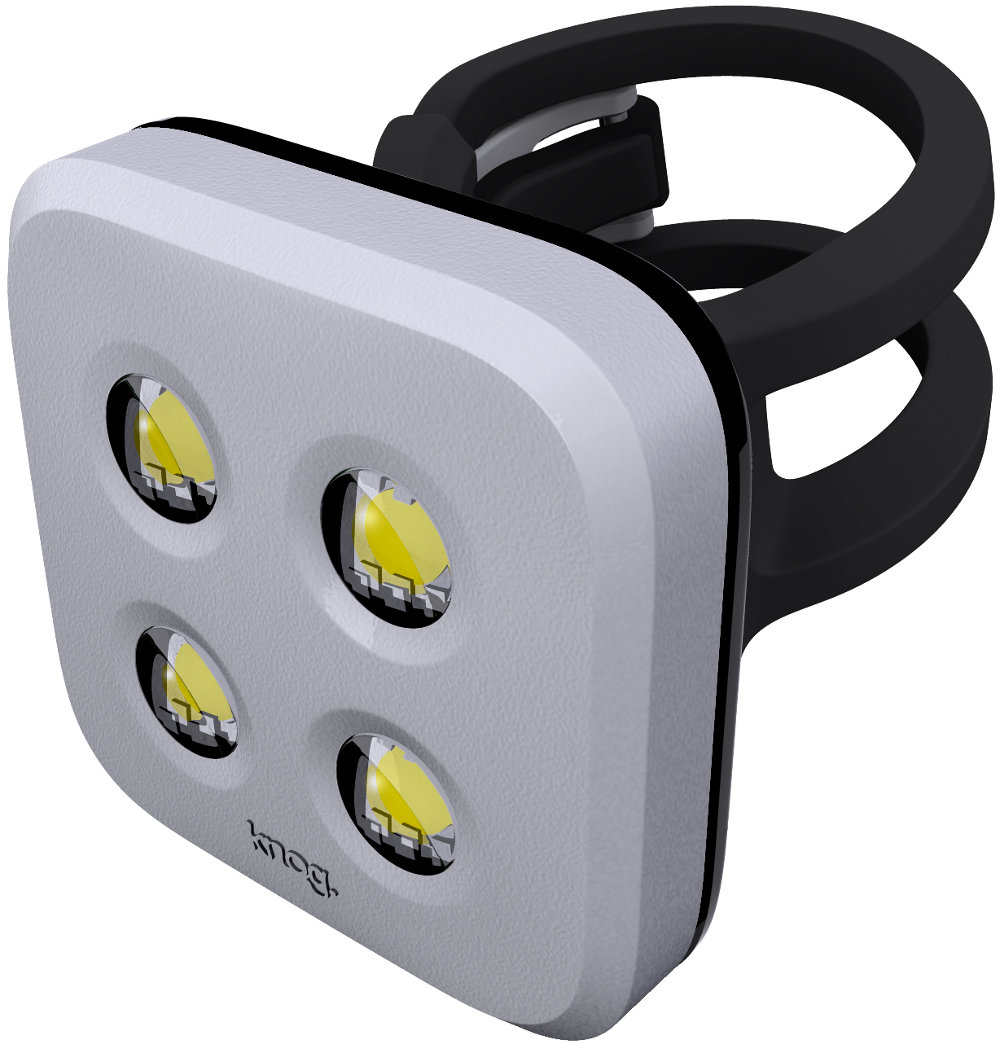 Knog Blinder 4. Produktfarbe: Silber, Gehäusematerial: Aluminium, Silikon. Lichtleistung: 80 lm, Balken-Abstand: 800 m