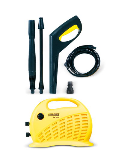 Das KÄRCHER Kinder–SET Hochdruckreiniger von knorr toys beinhaltet einen Hochdruckreiniger und ein Griffstück mit zwei austauschbaren Sprühaufsätzen für verschiedene Anwendungsmöglichkeiten. Durch den mitgelieferten Adapter ist ein einfacher Anschluss an alle gängigen Wasserschläuche möglich. Der Hochdruckreiniger ist sehr handlich und kann mit einem ca. 2,20 m langen Wasserschlauch mit dem Griffstück verbunden werden. Ein Set für alle Arbeiten im Freien – es ist voll funktionsfähig und benötigt keinen Strom.