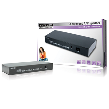 König KN-AVSPLIT20. Video Porttyp: Komponente, Stecker: RCA. Unterstützte Grafik-Auflösungen: 1920 x 1080 (HD 1080), Maximale Auflösung: 1920 x 1080 Pixel, Bandbreite: 250 MHz. Produktfarbe: Schwarz. Verpackungsbreite: 225 mm, Verpackungslänge: 36,3 cm, Verpackungshöhe: 71 mm