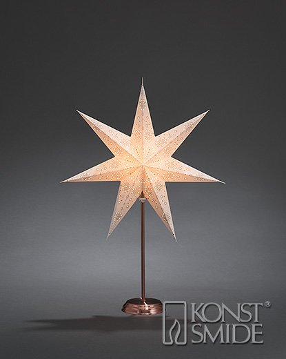 Weisser Papierstern, mit kupferfarbenem Musterdruck