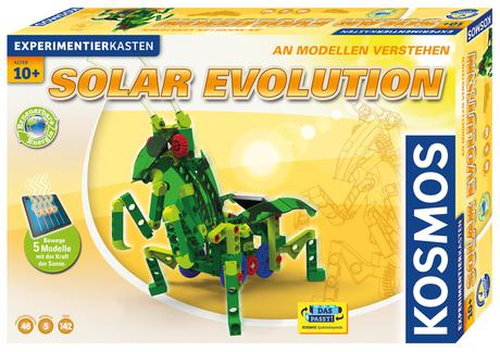 Solar-Technik Schritt für Schritt verstehen. Am Anfang steht ein einfacher Helikopter, der Sonnenlicht in eine Drehbewegung umwandelt. Dabei werden die Grundlagen der Solartechnik verständlich gemacht. Aus dem Basismodul entstehen dann weitere Modelle, die immer komplexer und anspruchsvoller werden und das Wissen weiter vertiefen. Am Ende entsteht eine Roboter-Heuschrecke, die sich wie ein Insekt fortbewegt. Besonders clever: Mit dem Solarmodul kann vorab ein Akku geladen werden, damit dem Spielspaß nichts im Wege steht, auch wenn die Sonne einmal nicht scheint. Die Anleitung enthält viele Hintergrundinformationen zur Solartechnik.