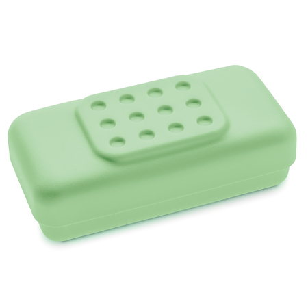 Form follows function. In GET WELL sind Pflaster in verschiedenen Größen bestens aufgehoben. Die kompakte Box findet auch in schmalen Erste-Hilfe-Schränken einen Platz und dank ihres klaren Designs ist das Verbandsmaterial immer sofort auffindbar. Das softe Kunststoffmaterial fasst sich gut an und so lässt sich die Box auch ganz bequem in der Jackentasche mitnehmen.
