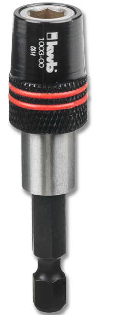 Schnellwechsel-Bithalter, Aufnahme 1/4" Sechskant nach ISO 1173, mit Dauermagnet, Federring, Schnellwechselfunktion, Einhandbedienung, Bitfreigabe durch einfaches Zurückziehen der Metallhülse, Sechskantschaft 1/4" Aufnahme nach ISO 1173, E 6.3.