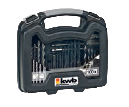 in Weichholz und 4 Lochsägen für Bohrungen in Holz- und Leichtbauwänden. Alle Bits und