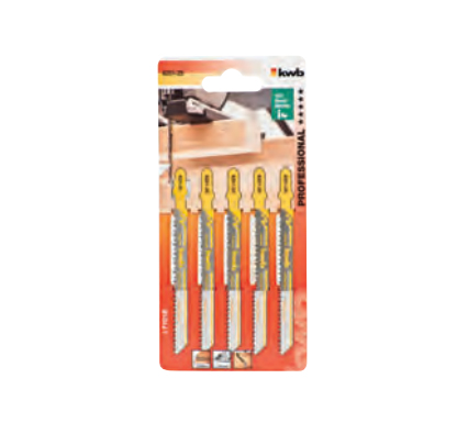 Stichsägeblätter, BIM, Bi-Metall, gehärtet, Zähne kreuz-, freiwinkel- und konisch geschliffen, schnelle, saubere Schnitte, mit Einstichzahn, für problemloses Eintauchen, für Holz, Hartholz, Span-, Tischler- und Faserplatten, Kunststoff beschichtete Platten, weiche Kunststoffe und glasfaserverstärkte Kunststoffe.
