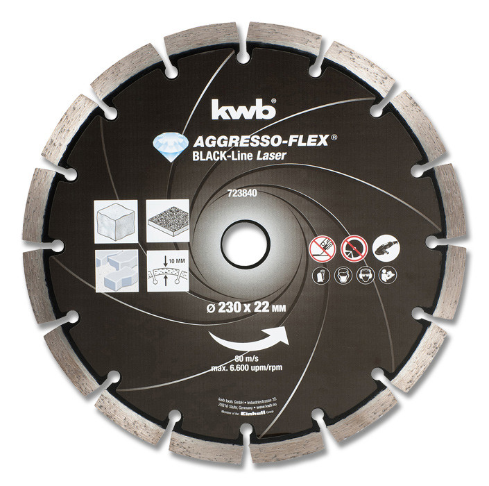 Black-Line DIAMANT Trennscheiben, segmentierter Schneidrand, lasergeschweißt, Turboform, Stärke 10 mm, für hohe Schneidleistung bei professionellem Dauereinsatz, für Granit, Betonsteine, Waschbeton, alle Natur- und Kunststeine, für alle handelsüblichen Winkelschleifer mit Umfangsgeschwindigkeit 80m/s.