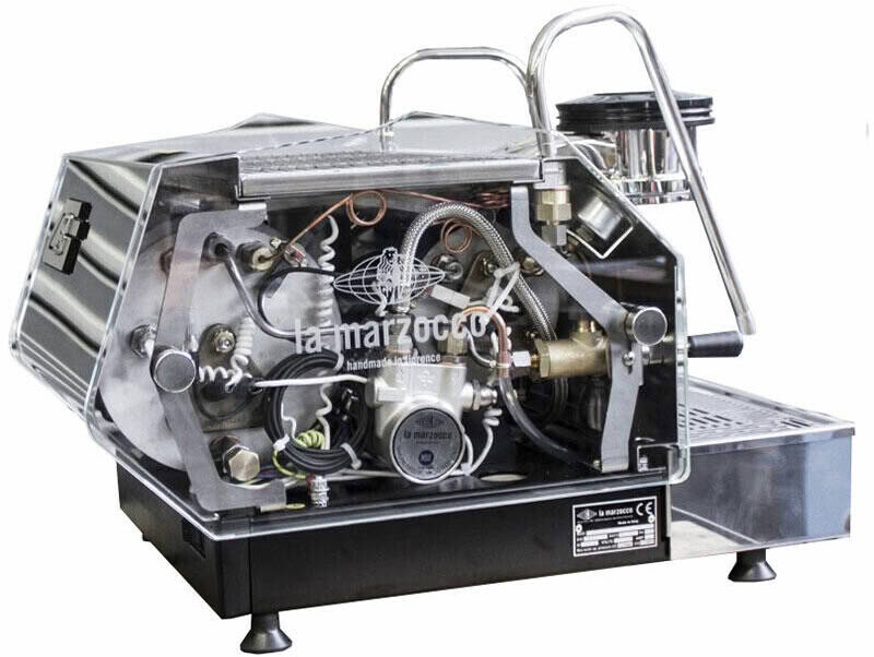 Bemerkung: mechanisches Paddle-System / gesättigte Brühgruppe / zwei Edelstahl-Boiler / Füllmenge Dampfboiler: 3,5 l / Füllmenge Espressoboiler: 1,5 l / elektronische P.I.D.-Temperaturkontrolle / Rotationspumpe / Vorheizfunktion / Festwasseranschluss optional möglich
