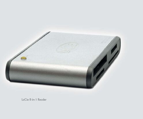 LaCie MOBILITY USB2.0/8 IN 1 READER (LET OP 30 UNITSPRIJS!). Gebündelte Software: Installation driver CD-ROM. Mindestsystemvoraussetzungen: USB, Kompatible Betriebssysteme: Windows 98/98 SE, Windows 2000, Windows Me, or Windows XP Mac OS 8.6 and greater