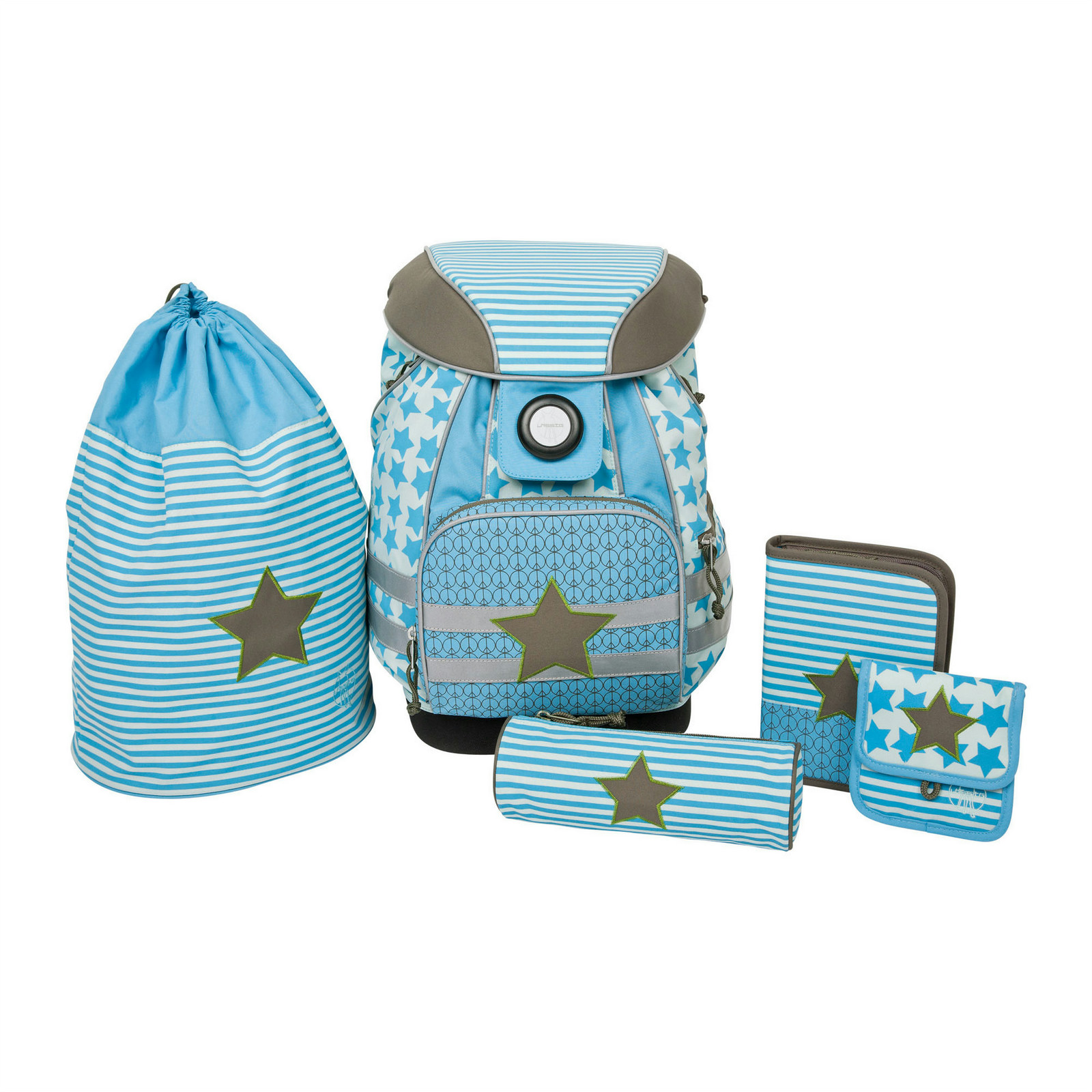 - Set beinhaltet Schulranzen, Turnbeutel, Schlampermäppchen, Brustbeutel und bestücktes Etui mit Markenprodukten von Staedtler