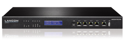 Der LANCOM 7100 VPN ist ein zentralseitiges Gateway, mit dem standardmäßig 100 Gegenstellen, über die LANCOM VPN Option bis zu 200 Standorte angebunden werden können. Die Quality of Service-Funktion mit dem dynamischen Bandbreitenmanagement sowie die vier Gigabit-Ethernet Slots sorgen dafür, dass der Datenverkehr im Netzwerk richtig priorisiert und zügig weitergeleitet wird. Mit ca. 260 Mbit IPSec Durchsatz und 512 MB RAM bewältigt der LANCOM 7100 VPN auch größere Datenmengen spielend. Vielfältige Anschlussmöglichkeiten an ISDN, WAN sowie der USB 2.0 Host Port erleichtern die Integration ins Netzwerk. Praktisch: Ein Display zeigt permanent verschiedene Geräteinformationen an, wie z. B. Temperatur, CPU-Auslastung und aktive VPNs. Die Funktionsfähigkeit des Lüfters wird über eine LED ständig angezeigt, zusätzlich warnt ein akustisches Signal für den Fall der Überhitzung der CPU.