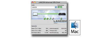 The LANCOM Advanced VPN Client provides field staff with high-security encrypted access to the company network—nationwide and abroad. The Client includes a stateful-inspection firewall and it supports all IPsec protocol extensions. VoIP data is prioritized. Test the user-friendly LANCOM Advanced VPN Client for MAC with our free 30-day demo version.