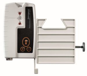 Laserempfänger für Rotationslaser, Laser-Empfangsbereich 120 m für rote und grüne Laser, mit Kopfmagnet. Leuchtstarke LED’s auf Vorder- und Rückseite. SpotLite-Funktion. Inkl.: Universalhalterung