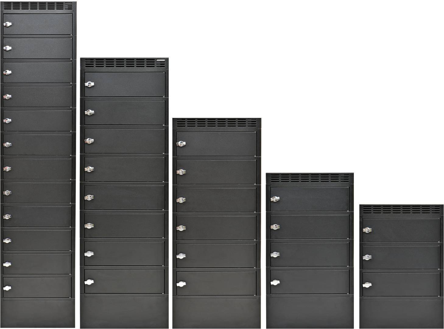 Leba NoteLocker 8. Produktfarbe: Schwarz, Minimum notebook screen size compatibility: 25,6 cm (10.1 Zoll), Material: Metall. Breite: 400 mm, Tiefe: 450 mm, Abmessungen der Notebookfächer (BxTxH): 430 x 320 x 80 mm. Kompatibilität: DK