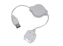 Lenmar AICF30PR, Cable, fits Apple iPod, 30 Pin, Data/Charge, Firewire Retractable Connector