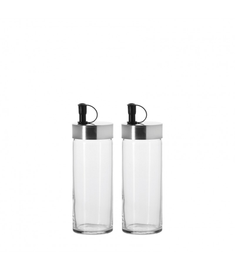 Das Set für Essig und Öl besteht aus zwei formschönen zylindrischen Glasgefäßen und ist unverzichtbar für ein klassisches Dressing auf frischen Marktsalaten! Der praktische Ausgießer verhindert lästiges Tropfen und dosiert die gewünschte Menge ganz nach Bedarf.