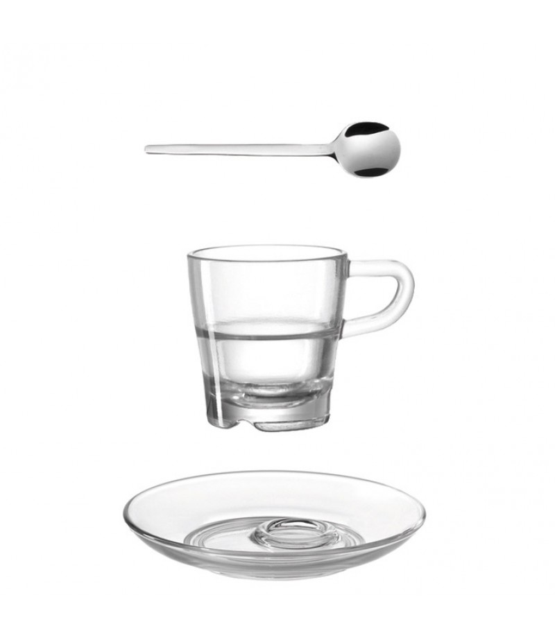 Mit dem Espresso-Set aus der Serie Senso ist der Genuss des kleinen Schwarzen ein besonderes Erlebnis. Die klare Formensprache der Tasse wird durch den originellen Untersatz mit dem asymmetrisch eingelassenen Rand perfekt in Szene gesetzt. Besonders praktisch: Die Tasse kann nicht mehr Verrutschen und es gibt ausreichend Platz für Gebäck oder kleine Pralinen. Cleveres Design von LEONARDO.