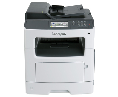 Lexmark MX410de. Drucktechnologie: Laser, Drucken: Mono printing, Kopieren: Mono copying. Druckgeschwindigkeit (Schwarz, normale Qualität, A4/US Letter): 40 Seiten pro Minute, Maximale Auflösung: 1200 x 1200 DPI, Druckersprachen (Standard): Microsoft XPS,PCL 5e,PCL 6,PDF 1.7,PostScript 3,PPDS. Zoombereich: 25 - 400%, Dauer bis erste Kopie (schwarz,normal): 6,5 s, Kopienschwindigkeit (US-Letter, schwarz): 40 Kopien pro Minute. Optische Scan-Auflösung: 600 x 600 DPI, Scan-Typ: Flachbett & ADF, Maximaler Scanbereich: 216 x 356 mm. Faxübertragungsgeschwindigkeit: 3 Sekunde/Seite, Modemgeschwindigkeit: 33,6 Kbit/s
