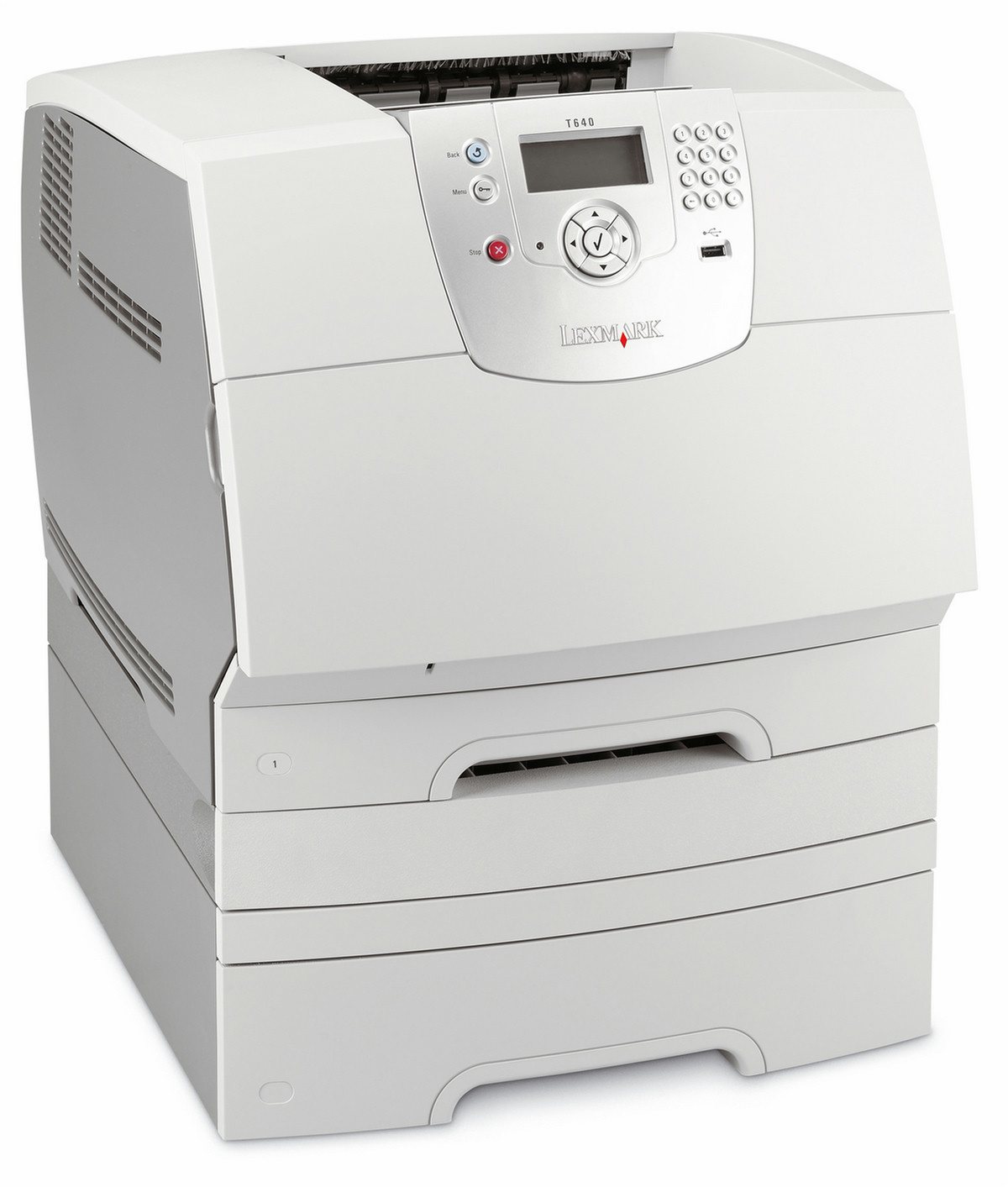 Lexmark T642dtn. Maximale Auflösung: 1200 x 1200 DPI, Maximale Auslastung: 200000 Seiten pro Monat, Drucktechnologie: Laser. Druckgeschwindigkeit (Schwarz, normale Qualität, A4/US Letter): 33 Seiten pro Minute, Ausgabe der 1. Seite (schwarz, normal): 6 s. Kapazität der Papiereingabe (Standard): 850 Blätter, Kapazität der Papiereingabe (maximal): 3850 Blätter. Kapazität der Papierausgabe (Standard): 256 Blätter, Max. Ausgabekapazität: 2750 Blätter. Maximale Papiergröße der ISO A-Serie: A4, Medientypen der Standardpapierzuführung: Briefumschläge, Etiketten, Normales Papier, Transparenzen, ISO-A-Formate (A0...A9): A4,A5