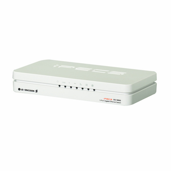 LG ES-1005G. Switch-Typ: Unmanaged network switch. Netzstandard: IEEE 802.1p,IEEE 802.3,IEEE 802.3ab,IEEE 802.3az,IEEE 802.3u,IEEE 802.3x. MAC-Adressentabelle: 8000 Eintragungen, Routing-/Switching-Kapazität: 10 Gbit/s, Datenrate: 10/100/1000 Mbps. Produktfarbe: Weiß, Gehäusematerial: Kunststoff, Zertifizierung: FCC A, CE A. Datenpaket-Pufferspeicher: 0,128 MB