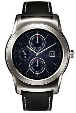 LG W150. Gehäusefarbe: Silber, Armbandfarbe: Schwarz, Form: Rund. RAM capacity: 512 MB, Flash-Speicher: 4 GB. Batteriekapazität: 410 mAh, Batterielebensdauer: 36 h. Breite: 45,5 mm, Tiefe: 52,2 mm, Dicke: 1,09 cm. Schutzfunktion: Wasserfest