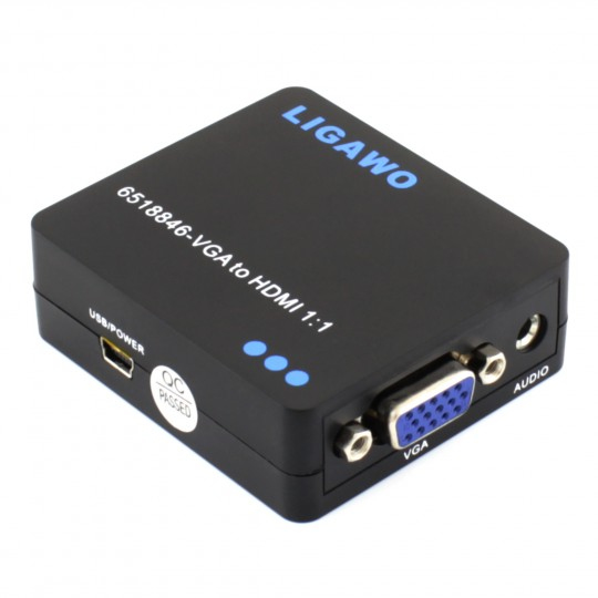 Der Ligawo 6518846 VGA zu HDMI Konverter ermöglicht die Umwandlung von analogem VGA (z.B. Computer, Netbook etc.) zu digitalem HDMI (z.B. Monitor, Beamer, Tv). Seine geringe Größe und die stabile Bauform, machen den Ligawo Konverter auch zum idealen Laptop Reisebegleiter.