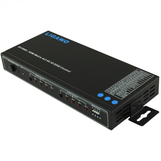 Mit der Ligawo HDMI Matrix 4x2 erleben Sie den aktuellen Stand der Technik. Neben der unterstützten 3D und 4K Verarbeitung können Sie auch aktiv das EDID Signal steuern. Mit 16 vordefinierten Steuerungsoptionen finden Sie für fast alle Anwendungsfälle eine passende Kombination. So können Sie z.B. bei paralleler Ausgabe eines Eingangs an beide Ausgänge eine 4K-, 3D-, oder 5.1 Ausgabe erzwingen, obwohl ein Endgerät dieses Format gar nicht unterstützt. Alle möglichen Optionen sehen Sie auf dem Artikelbild.