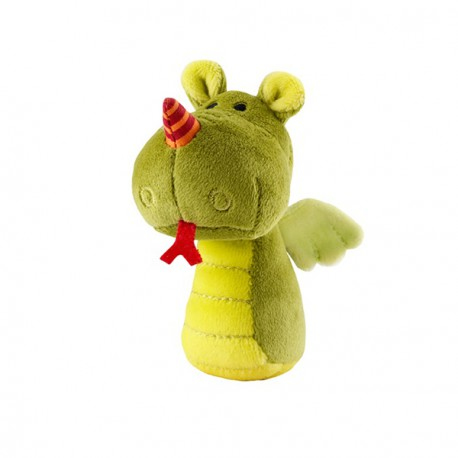 Eine ganz süße kleine Rassel, die aussieht wie Walter der Drache. Schüttle sie und bringe ihre Schelle zum Klingen.