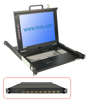Eingabeterminal mit KVM Switch für bis zu 8 Server direkt, zum Einbau im 19" Rack
