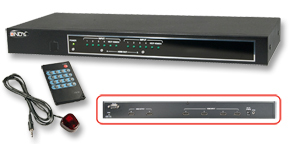 - Umschalten per Fernbedienung und Tasten am Gerät sowie per RS232