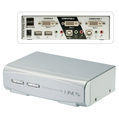 KVM Switch PRO USB 2.0 Audio DVI-I Dual Link 2 Port - mit Anschlusskabeln, für Mac und PC