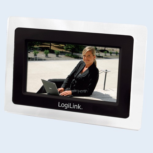 LCD Bilderrahmen von LogiLink für Speicherkarten und USB Sticks mit integriertem Multiformat Kartenleser. Dieser digitale Bilderrahmen zeigt Ihnen Ihre Lieblingsfotos Das große, hochauflösende 7 Zoll (ca. 17,8 cm) LCD-Display besticht durch brillante Farben und einen hohen Kontrast. Die übersichtliche Anordnung der Knöpfe lässt Sie schnell, sicher und durch alle Funktionen leicht navigieren.