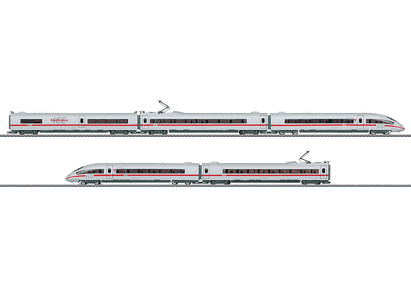 Vorbild: Hochgeschwindigkeitszug ICE 3. Baureihe 403 der Deutschen Bahn AG (DB AG). 1 Endwagen 403.0, 1. Klasse. 1 Trafowagen 403.1, 1. Klasse. 1 Speisewagen "BordBistro" 403.3. 1 Trafowagen 403.6, 2. Klasse. 1 Endwagen 403.5, 2. Klasse. Der Zug trägt den Namen "Offenburg", Betriebszustand 2011.