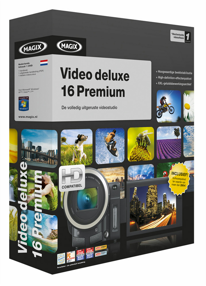 Magix Video deluxe 16 Premium. Unterstützte Sprachen: Niederländisch. Kompatible Betriebssysteme: Microsoft Windows XP / Vista / 7. Abmessungen (BxTxH): 220 x 50 x 260 mm