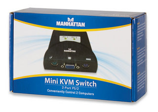 Der MANHATTAN KVM-Switch ist ein kompakter 2-Port Umschalter mit integrierten Anschlusskabeln. Seine konsolenseitige PS/2-Unterstützung ermöglicht den Anschluss einer PS/2-Tastatur und Maus und damit Zugriff, Kontrolle, Start und Neustart von zwei PS/2-fähigen PCs mit nur einer PS/2-Tastatur, einer Maus und einem Monitor.