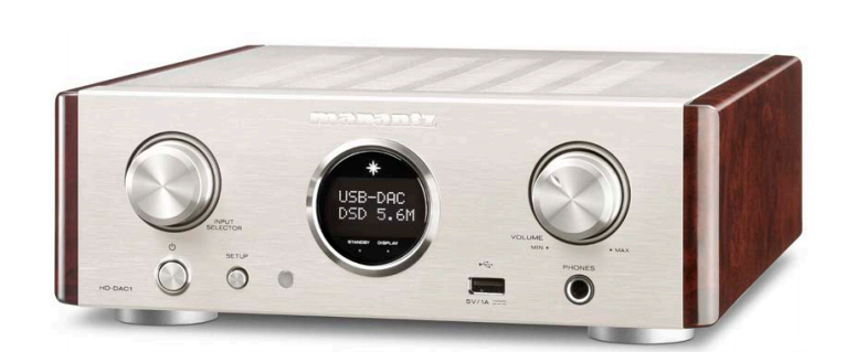 Marantz HD-DAC1. THD, totalklirren: 0,0012%, Signal-zu-Geräusche Verhältnis (SNR): 106 dB, Synchronisations-Eingangsimpedanz: 32 Ohm. Breite: 250 mm, Tiefe: 270 mm, Höhe: 89,9 mm
