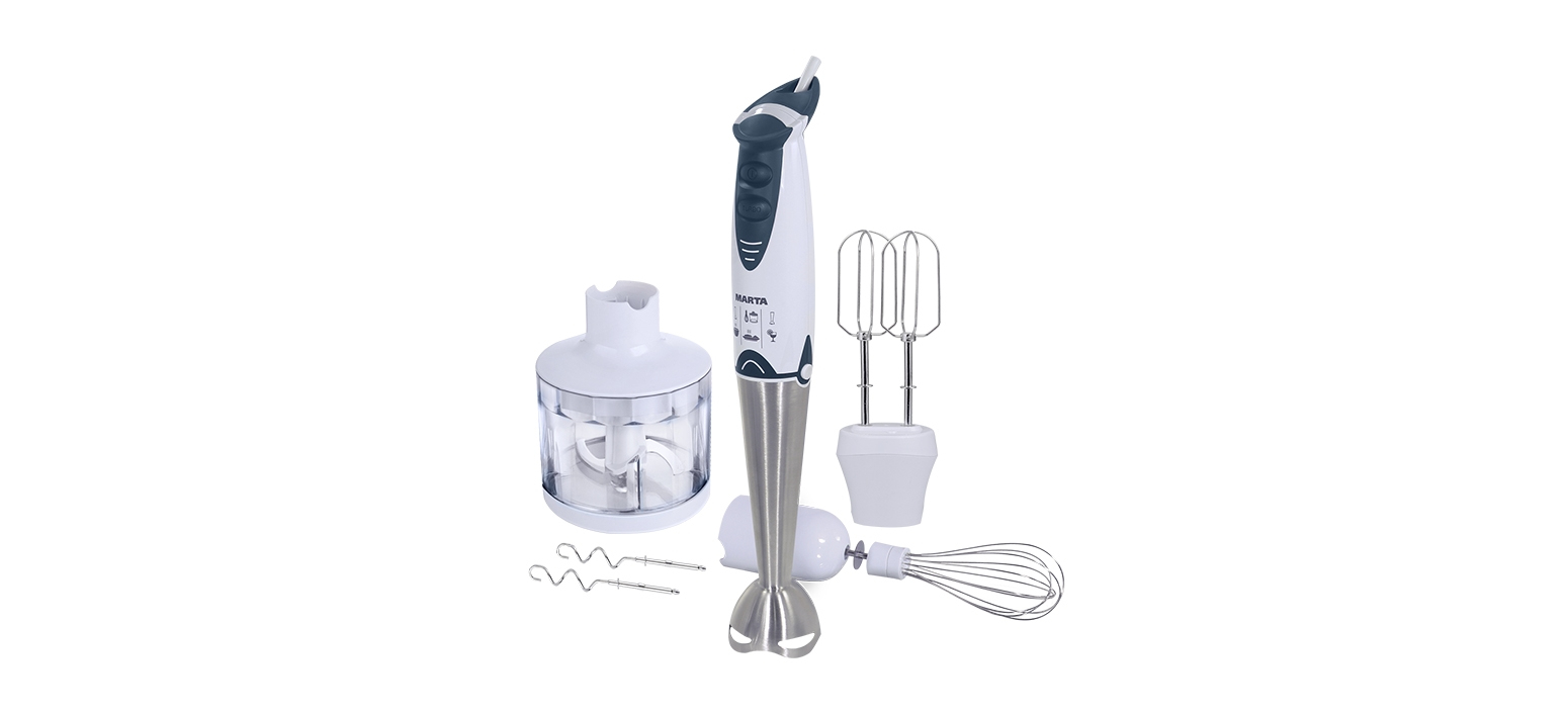 MARTA MT-1553. Typ: Pürierstab, Schüsselkapazität: 0,4 l, Produktfarbe: Grau. Material Messer: Edelstahl, Material Messer: Edelstahl. Leistung: 900 W, Energiequelle: AC. Gewicht: 1,44 kg, Paketgewicht: 1,6 kg