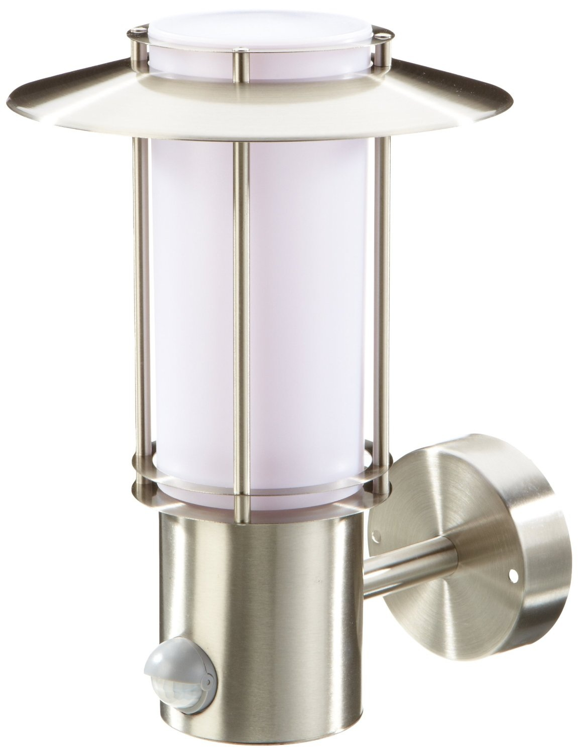 20 W, E27, PLC, PIR, IP44, Stainless steel/White