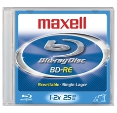 Maxell BLU-RAY BD-RE 25GB 2x. Verpackungsart: Jewelcase. Kapazität ohne Komprimierung: 25 GB, Typ: DVD-RW, Aufnahmezeit: 168 min