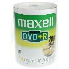 Maxell DVD+R. Kapazität ohne Komprimierung: 4,7 GB, Typ: DVD+R, Menge pro Packung: 100 Stück(e). Verpackungsart: Spindel