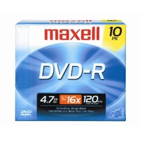 Maxell DVD-R. Kapazität ohne Komprimierung: 4,7 GB, Typ: DVD-R, Menge pro Packung: 10 Stück(e). Verpackungsart: Slimcase
