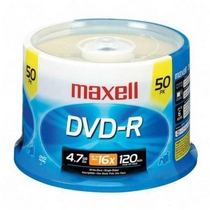 Maxell DVD-R. Kapazität ohne Komprimierung: 4,7 GB, Typ: DVD-R, Menge pro Packung: 50 Stück(e). Verpackungsart: Spindel