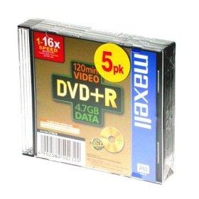 Maxell DVD+R. Kapazität ohne Komprimierung: 4,7 GB, Typ: DVD+R, Menge pro Packung: 5 Stück(e). Verpackungsart: Slimcase