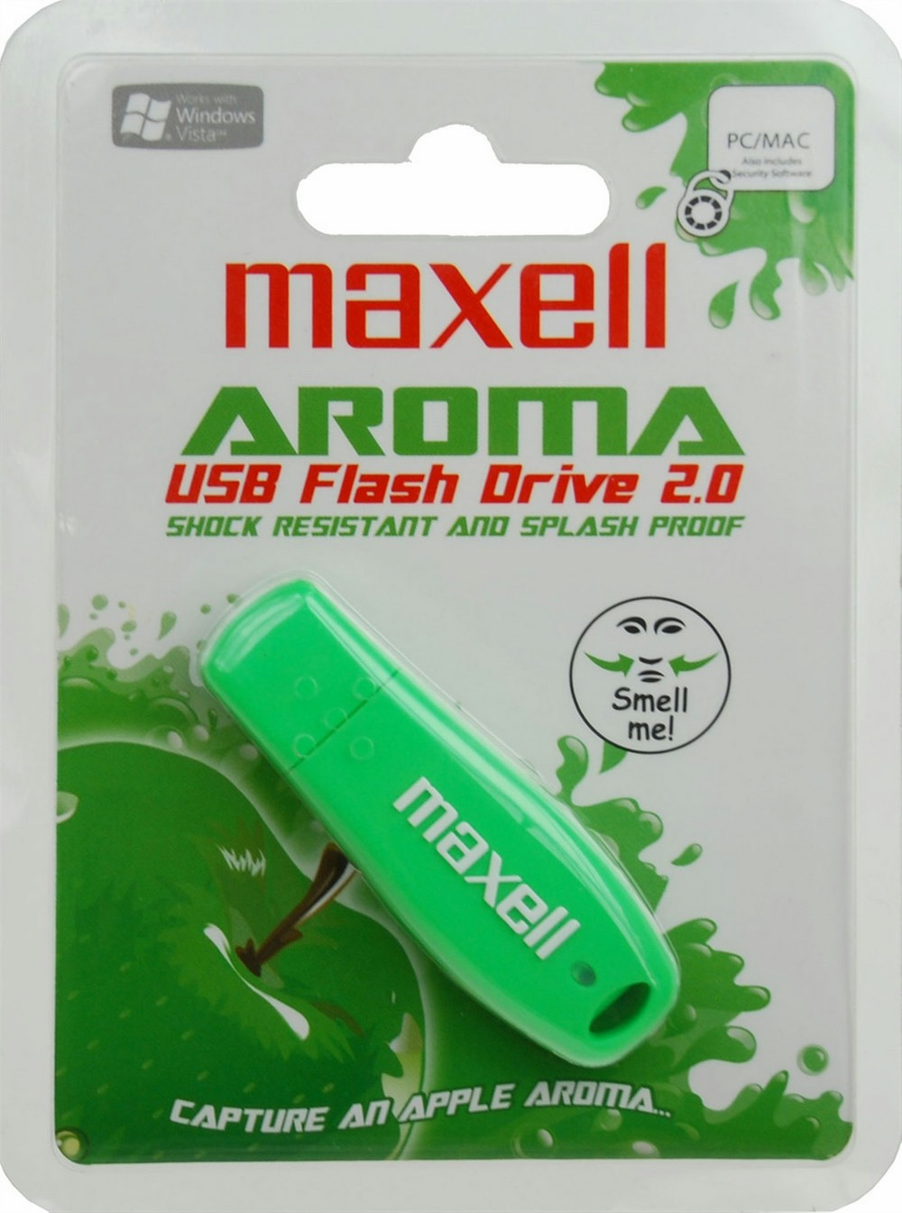 Maxell USB Aroma 8GB. Kapazität: 8 GB, USB-Version: USB 2.0, USB-Anschluss: Typ A. Produktfarbe: Grün. Breite: 12 mm, Tiefe: 18 mm, Höhe: 17 mm