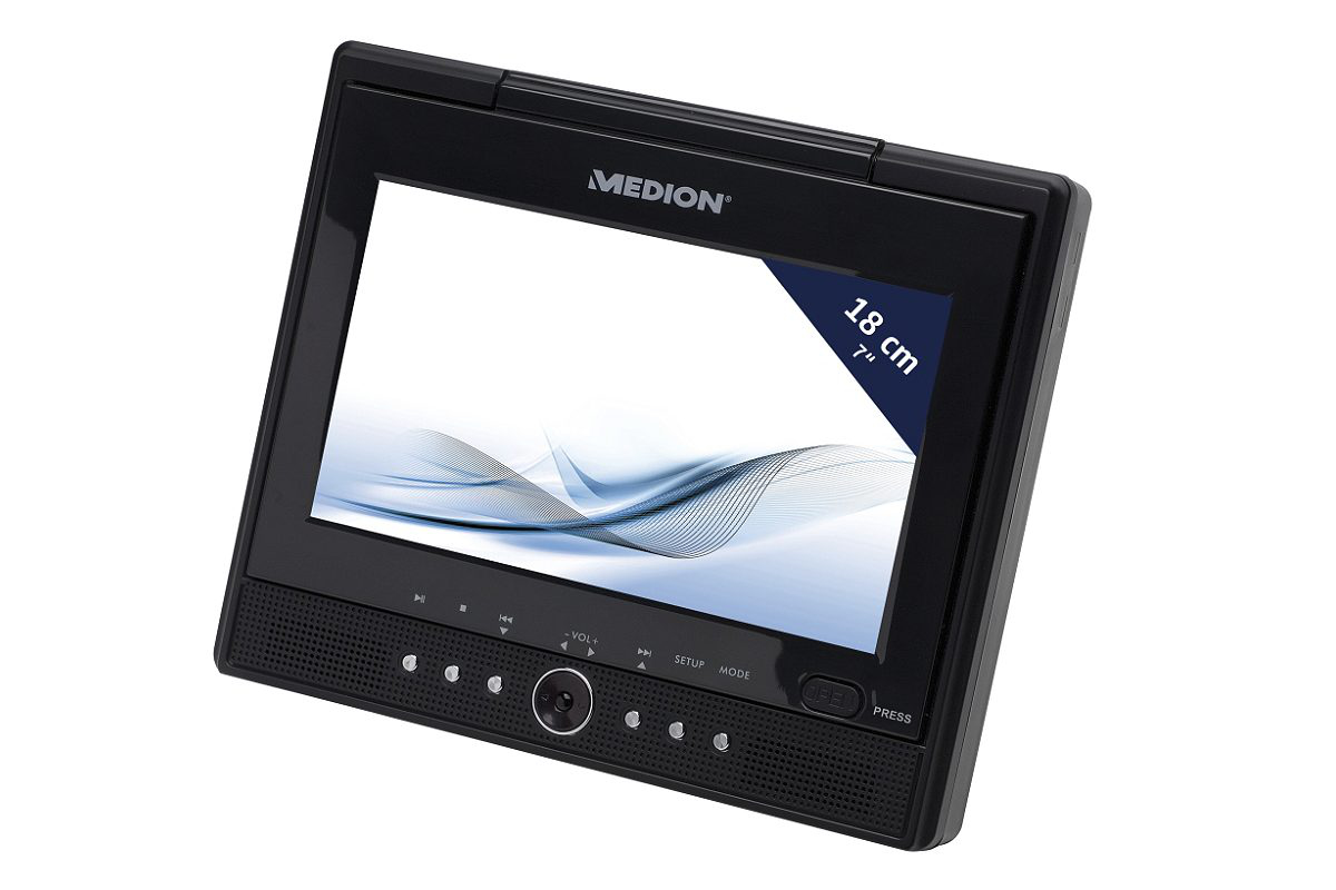 Medion E72010. Analoges Signalformatsystem: NTSC, PAL. Unterstützte Videoformate: MPEG4, XVID, Unterstützte Audioformate: MP3. Playback Disk-Formate: CD-Audio, SVCD, VCD, Playback-Disk Typ: CD-R, CD-RW, DVD+R, DVD+RW, DVD-R, DVD-RW, Kompatible Speicherkarten: Speicherstick (MS), MMC, SD. Produktfarbe: Schwarz. Anzeige: LCD, Seitenverhältnis: 4:3, 16:9