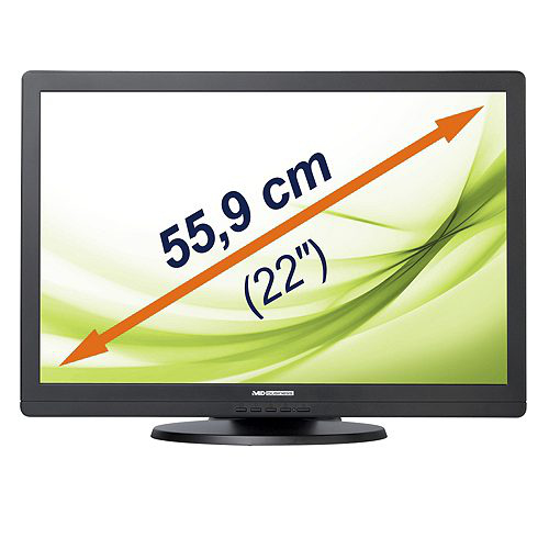 Medion LIFE P54017 22" TFT. Bildschirmauflösung: 1680 x 1050 Pixel, Anzeige: LCD, Unterstützte Grafik-Auflösungen: 1680 x 1050 (WSXGA+). Produktfarbe: Schwarz. Schwenkwinkelbereich: -45 - 45°, Neigungswinkel: -2 - 20°