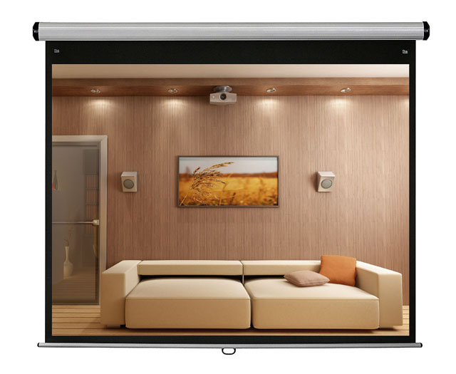 -Diffus reflektierende Bildwandfläche für gleichmäßige Lichtverteilung.