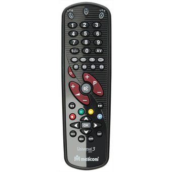 Meliconi GumBody Universal 3 300. Schnittstelle: IR Wireless, Produktfarbe: Schwarz. Eingangssignal: Drucktasten. Batterietechnologie: Alkali, Akku-/Batterietyp: AA