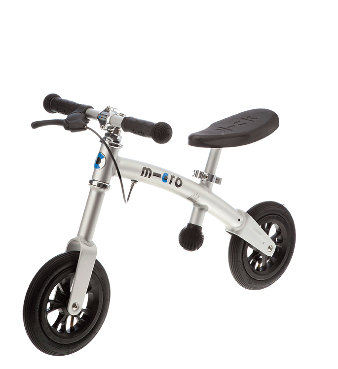 The g-bike+ with airwheels is a revolutionary runner bike for small children. Thanks to its light weight, it can be carried easily by hand or with a pram. The g-bike+ weighs half as much as other comparable models on the market. Its 200 mm air wheels are perfect for cobblestones and gravel. The handbrake makes it very easy to slow down. Handlebar and saddle are adjustable and the rubber knob is there to protect kids from injuries. Handlebar and saddle are adjustable and the rubber knob is there to protect kids from injuries.